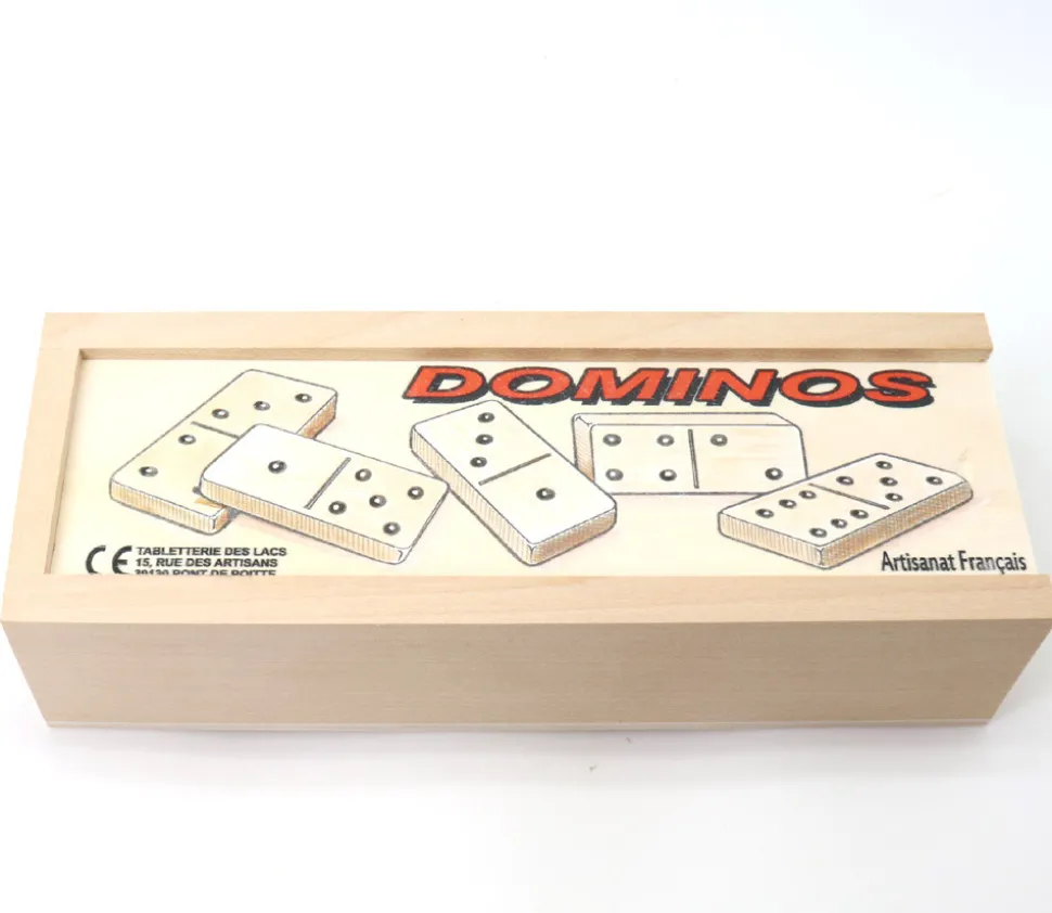 Un jeu de domino avec 28 tuiles en bois de hêtre.