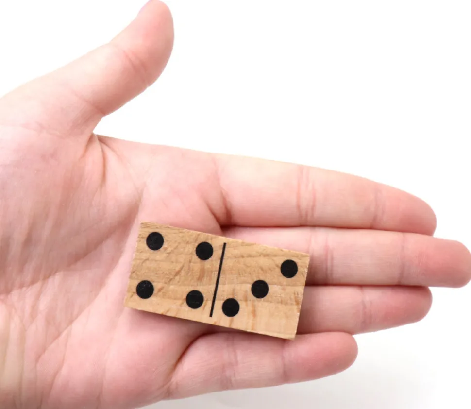 Jeu de dominos en bois avec 28 dominos de 5 x 2.5 cm. Coffret en bois avec dominos petit modèle pour jouer à ce célèbre jeu de société.