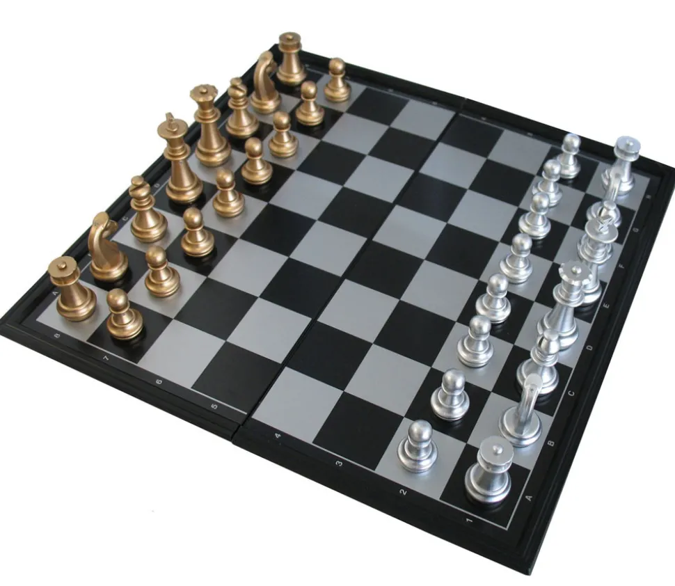 Le coffret jeu d’échecs Magnétiques voyage argent – or magnétiques comprenant :