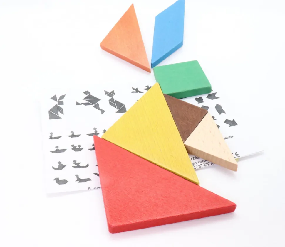 Casse-tête traditionnel. Jeu de logique et de stratégie. La forme spécifique des 7 pièces permet de créer et reproduire différents sujets.