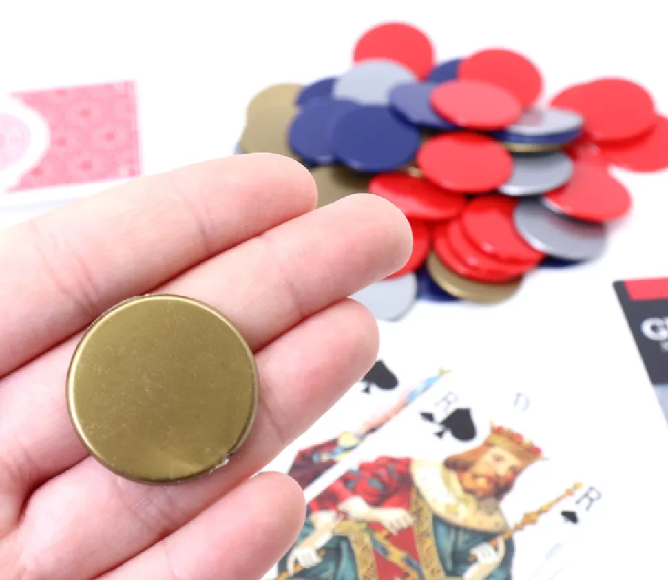 – 15 jetons ronds de 30 mm de diamètre dorés