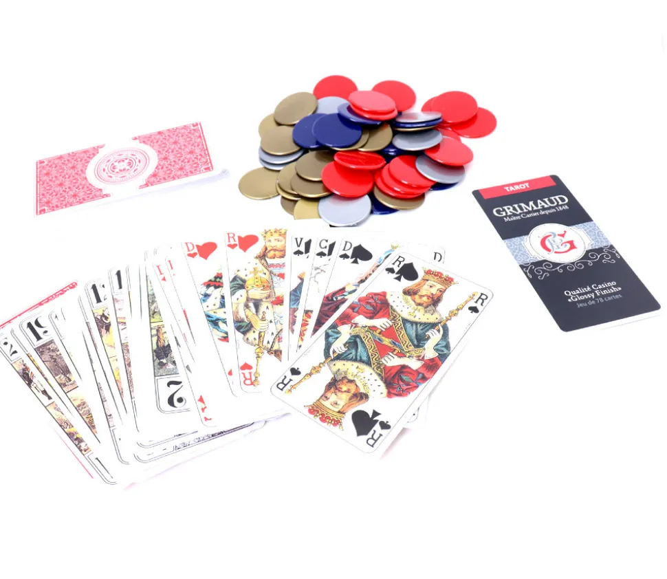Découvrez le Coffret Tarot Luxe avec Cartes et Jetons, un ensemble de jeu complet et raffiné pour les passionnés de Tarot.