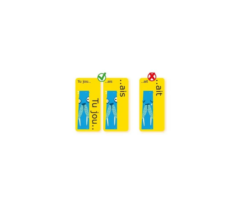 Ce jeu rapide et rigolo est un excellent jeu éducatif pour pratiquer la conjugaison tout en stimulant l’intérêt des enfants pour la langue française.