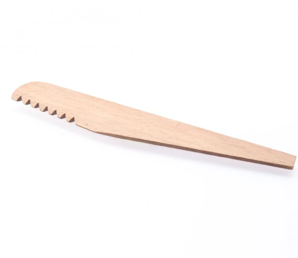 Couteau bois qui va vous permettre de couper des matières molles du type : pate à modeler, argile, pate polymère, pate à sel, pate à tarte…