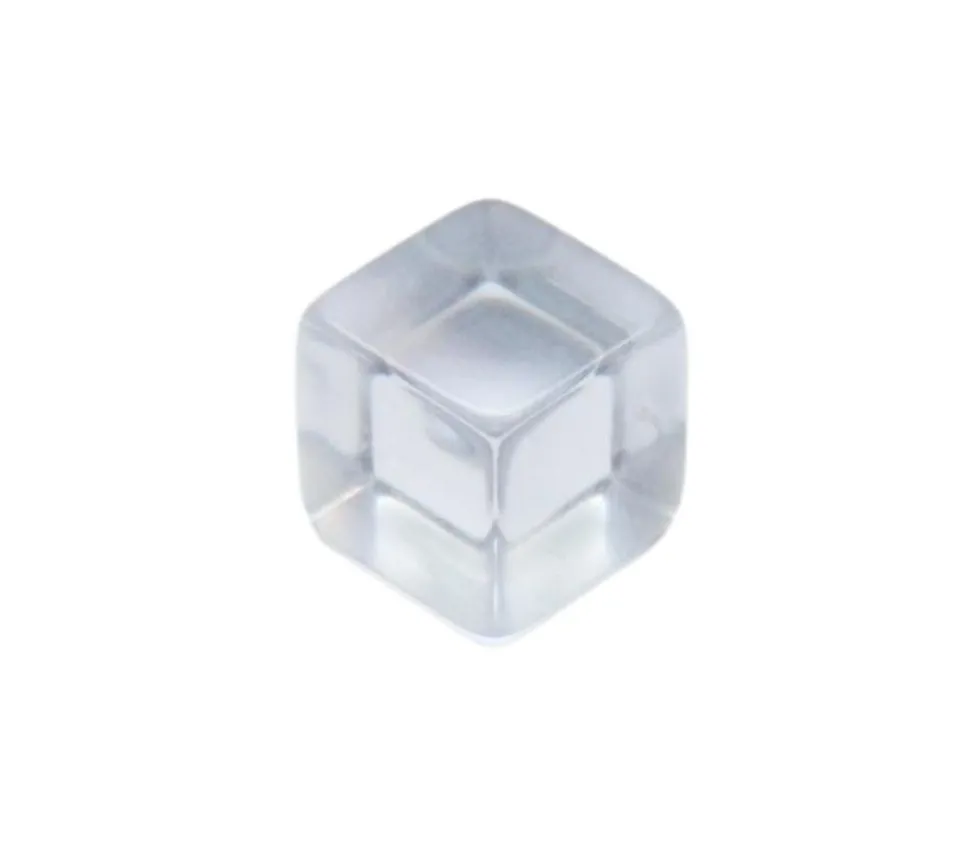 Cube translucide de 12 mm avec les angles vifs à utiliser comme jetons, pions de jeux, compteur.
