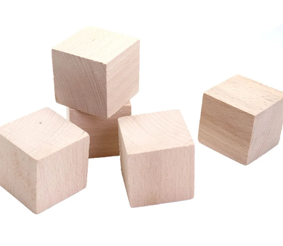 Gros cube en bois de hêtre naturel que vous pouvez empiler. Livré brut, vous pouvez le personnaliser avec de la peinture, des feutres spéciaux, de la pyrogravure ou des adhésifs.