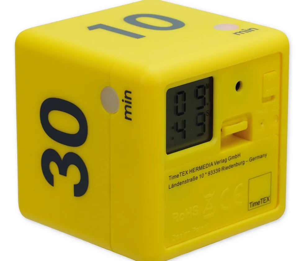 Cube timer électronique avec affichage digital avec des temps prédéfinis de 10, 15, 20 ou 30 minutes.