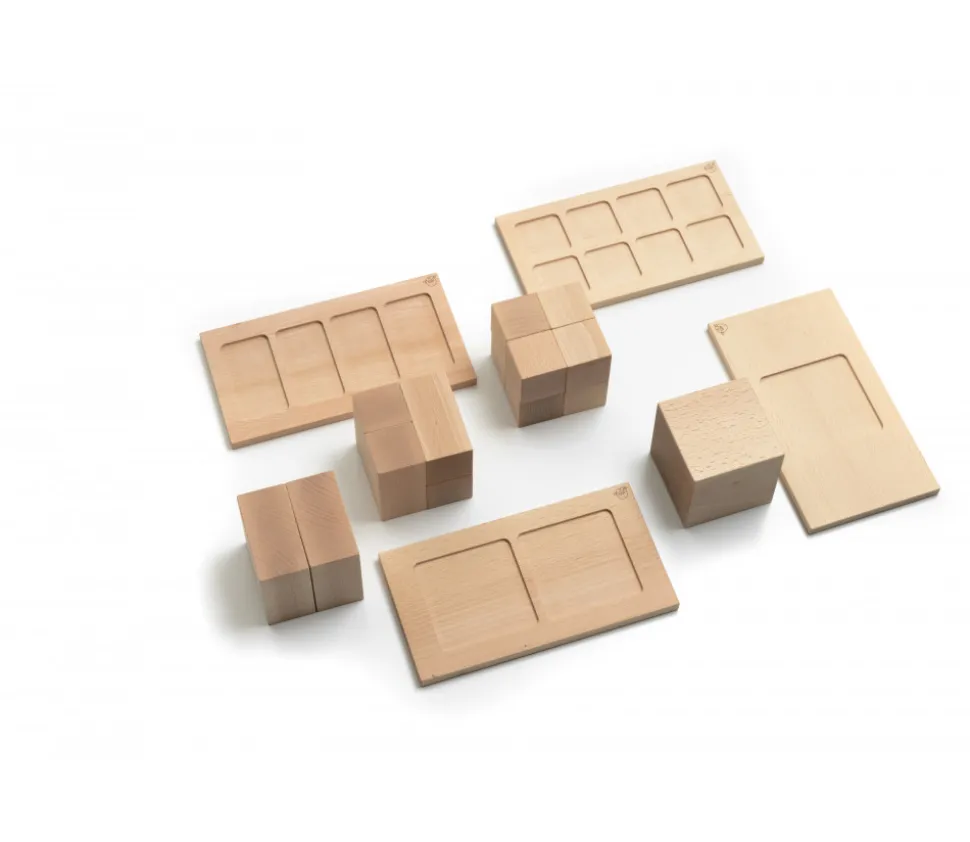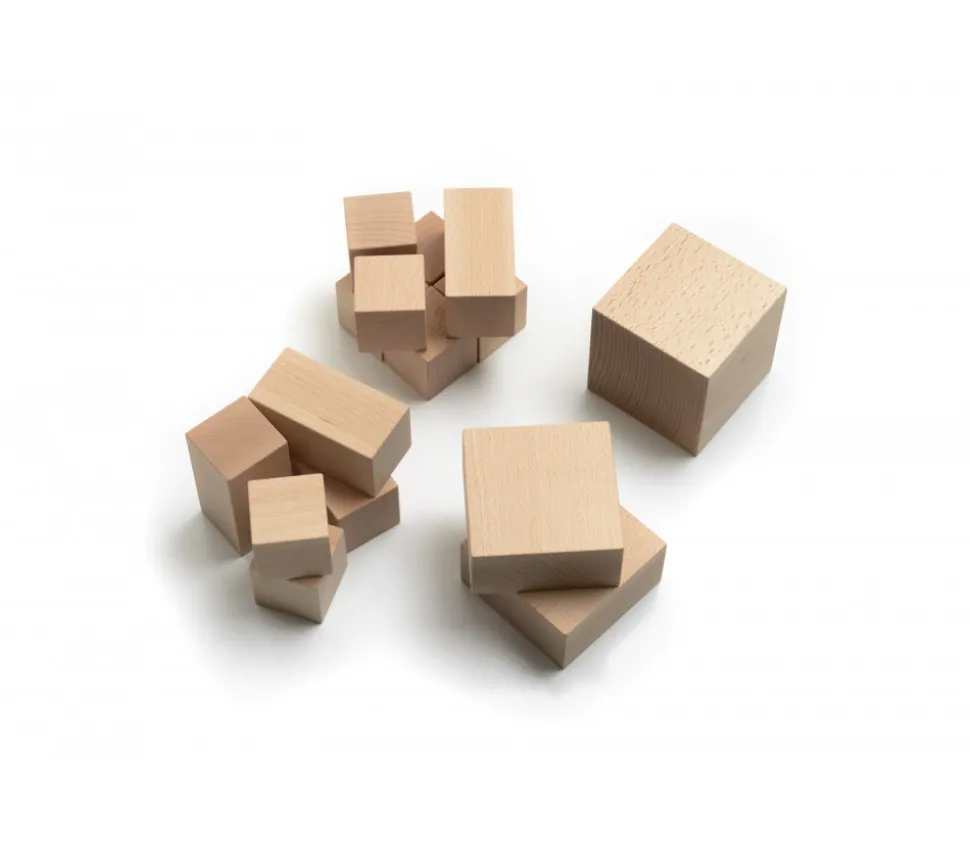 Kit Cubes en bois pour décomposition, géométrie, fraction. Matériel éducatif en bois massif. Agréable à manipuler, il aide les enfants à comprendre de nombreuses notions mathématiques.