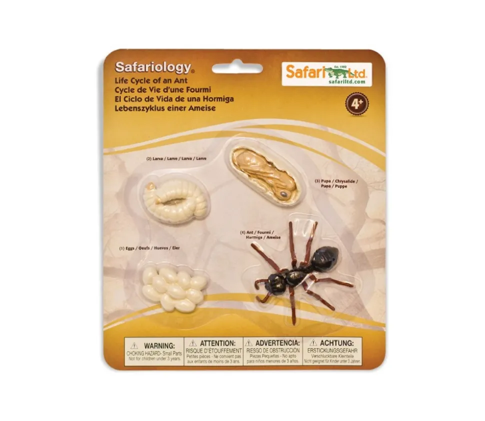 Outil pédagogique cycle de vie de la fourmi. Figurine en plastique pour la manipulation en Sciences.