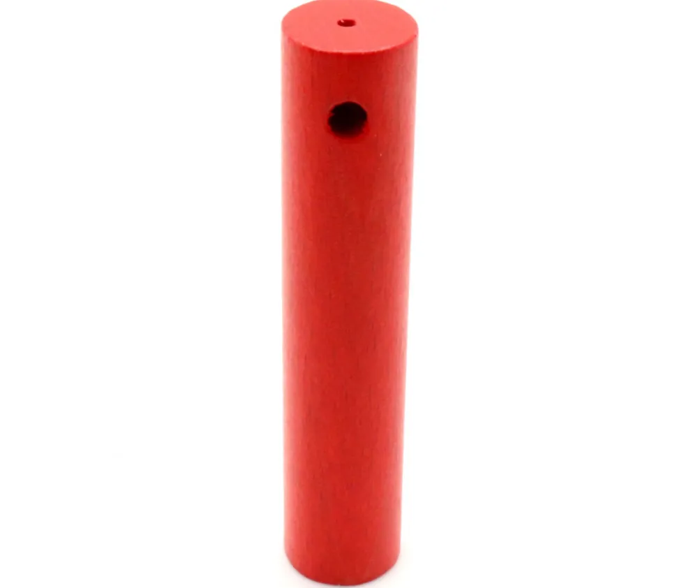 Cylindre rouge de 10 cm de diamètre, 2 cm de diamètre avec un trou traversant dans la largeur de 5 mm. Grand cylindre en bois rouge pour jeux pouvant servir de totem ou de poignée. Fabrication française. Spécialiste des accessoires de jeux.