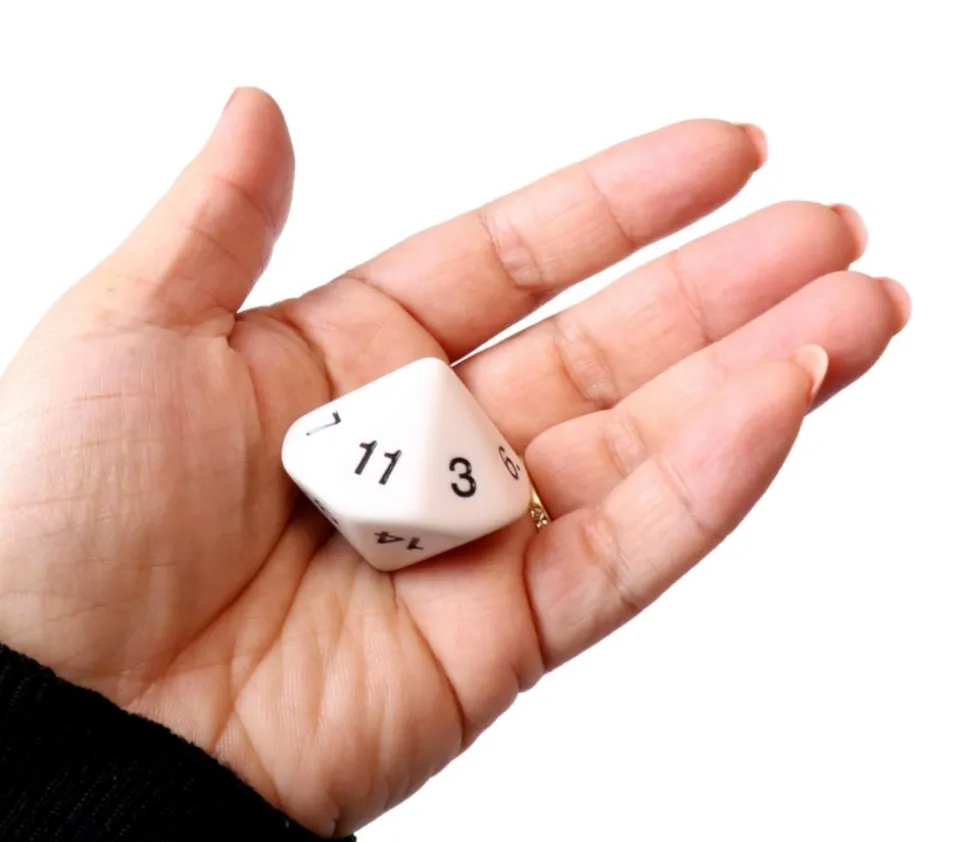 Gros dé 14 faces avec chiffres de 1 à 14.