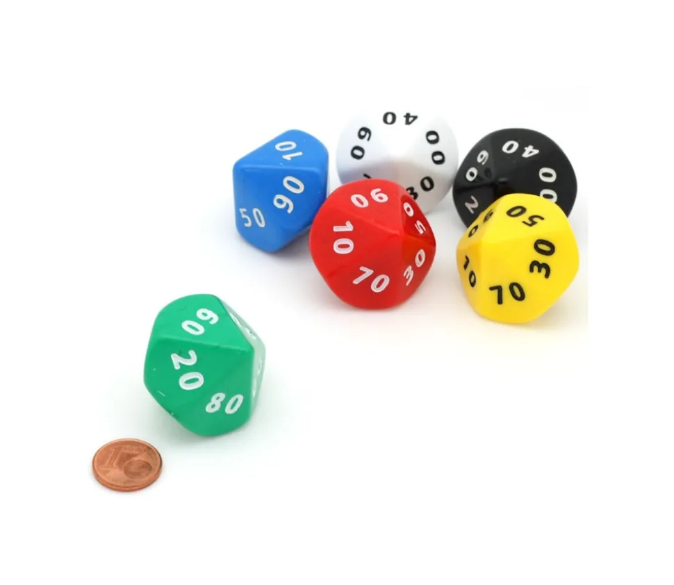 Dé avec 10 faces avec les dizaines très pratique pour réaliser des exercices mathématique, jeux de rôle et certains jeux de société. Grande dé de 3.5 cm de diamètre idéal pour jeux de groupes et apprentissages.