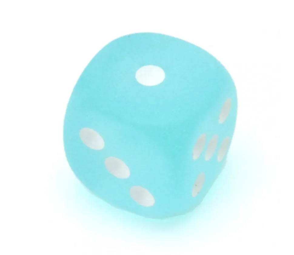 Beau dé à jouer de qualité effet givré en couleur turquoise. Ce dé turquoise avec une texture granuleuse donne un aspect neigeux au dé. Ce dés à 6 faces avec des points de 1 à 6 blancs