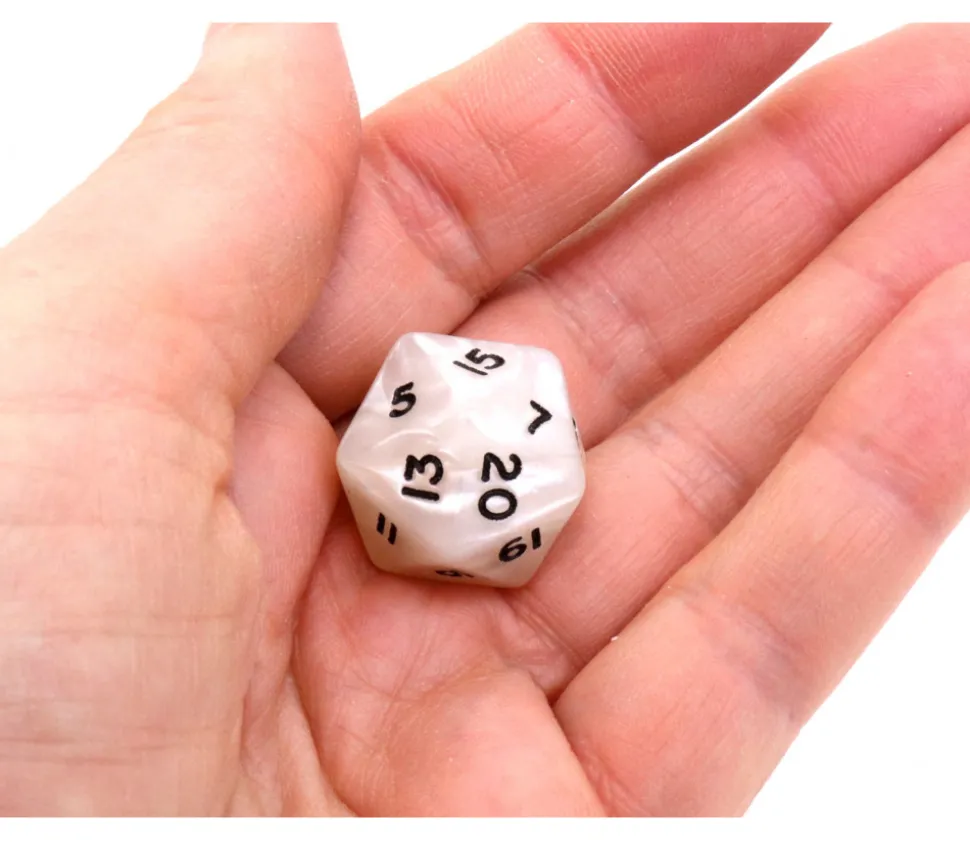 Dé à jouer D20 avec un bel effet nacré de la matière idéal pour vos jeux de rôle.
