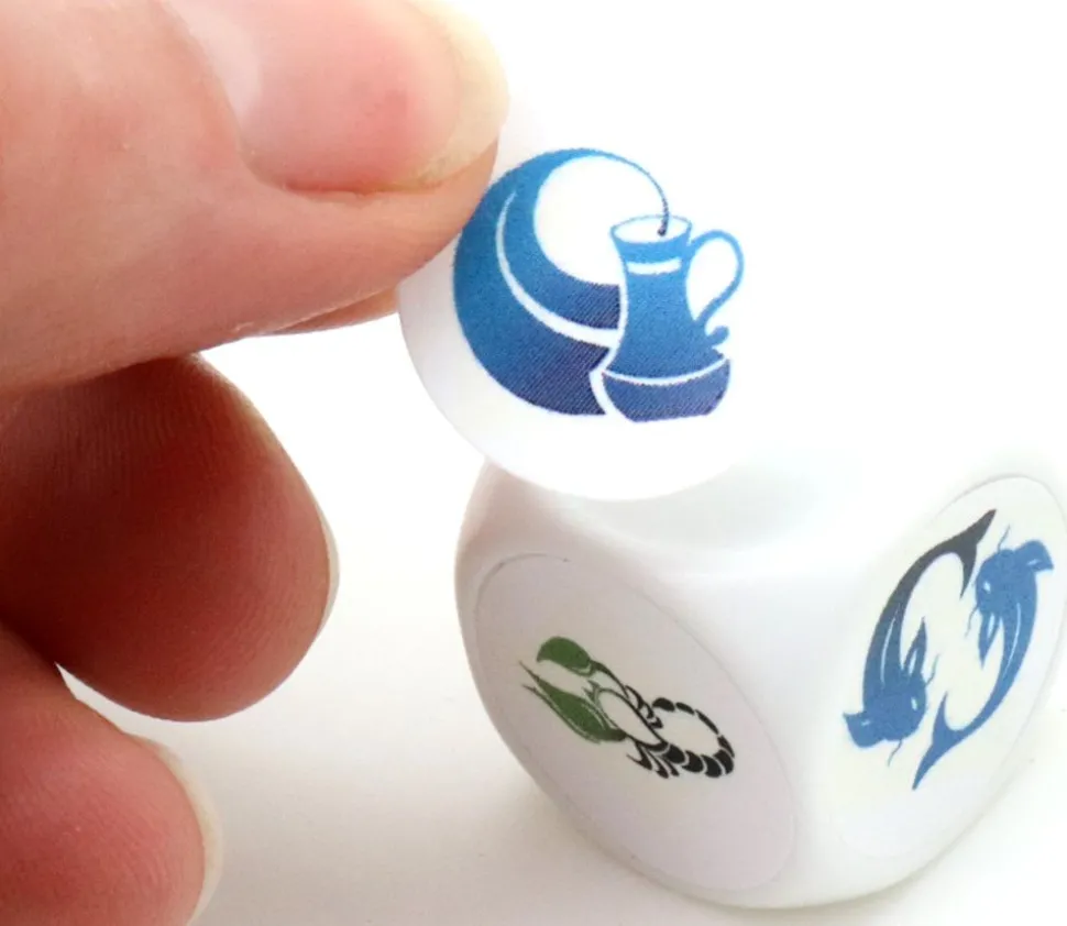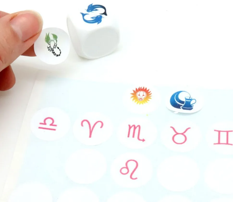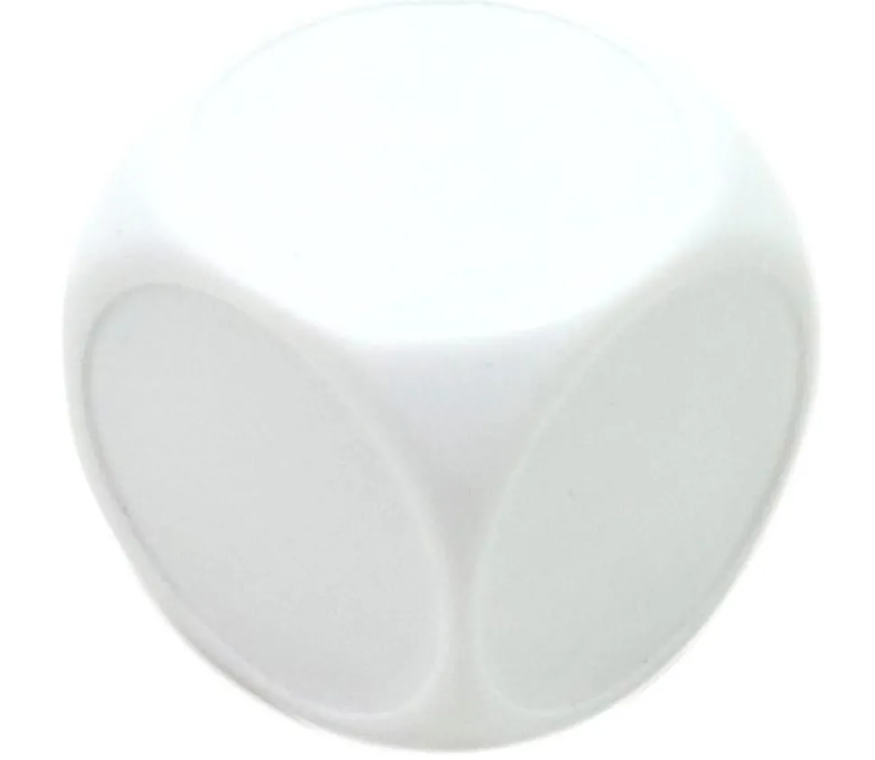 Dé vierge sur lequel vous pouvez collez des ou des autocollants de 19 mm ou 20 mm pour créer votre dé personnalisé. Dé à jouer blanc sans pastilles autocollantes.