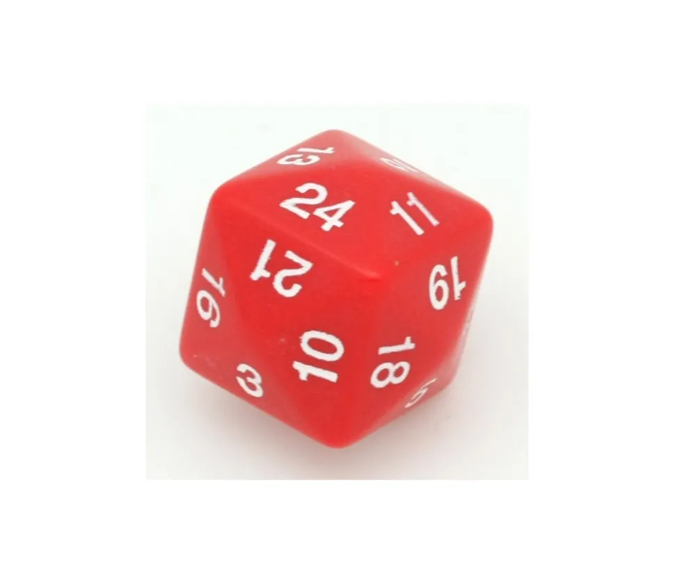 Grand dé de 24 faces de 2.5 cm de diamètre pour exercice mathématique, jeux de rôle et certains jeux de société. Polyèdre avec vingt faces.