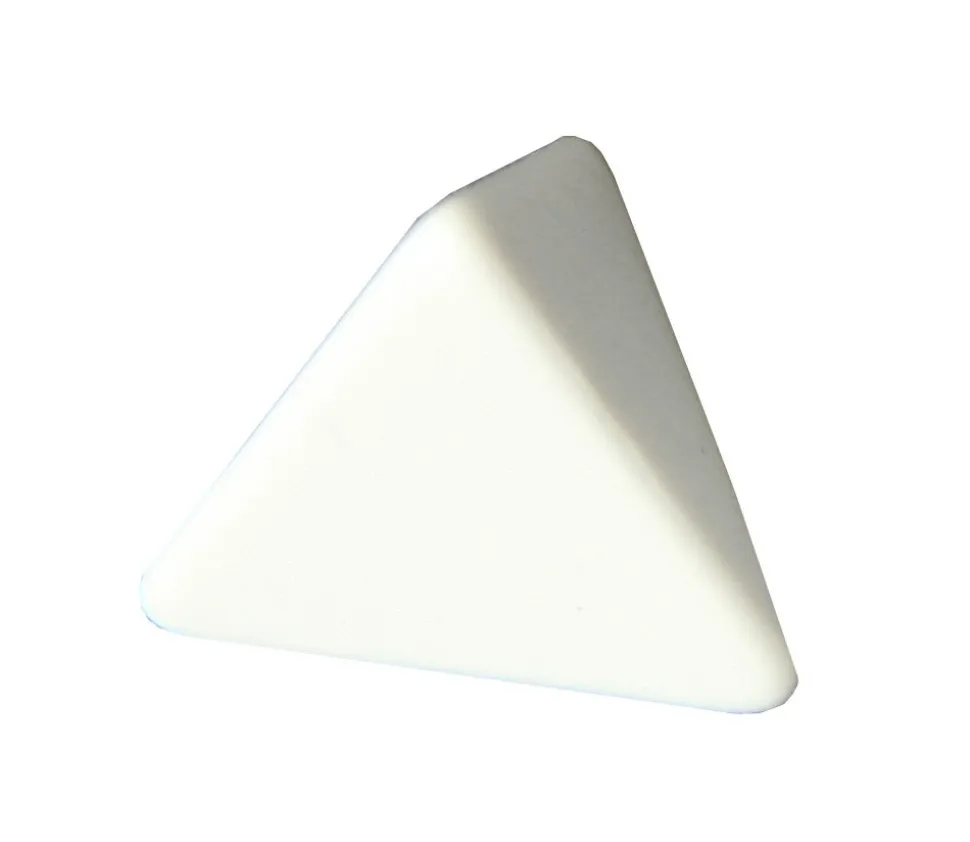 D4 pyramide blanc avec des côtés triangulaires de 3 x 3 x 3 cm sans marquage.
