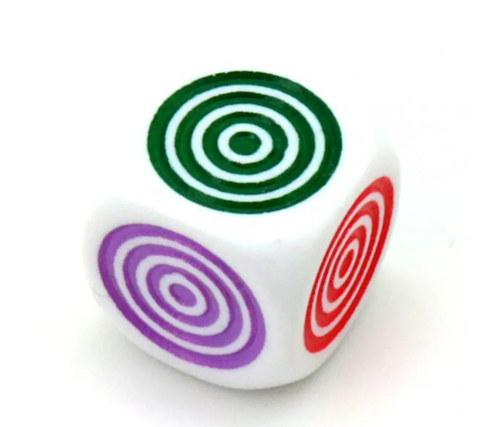 Dés couleurs en plastique de 16 mm. Ronds cylindriques colorés sur chaque face : rouge, vert, jaune, bleu, violet, orange. Dé avec 6 couleurs pour complèter vos jeux de société ou faire des jeux d’apprentissage.