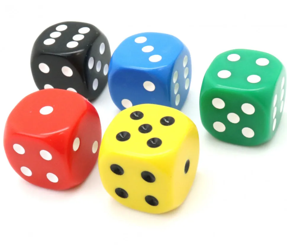 Dé à jouer en plastique classique 2.2 x 2.2 cm de côté numérotés de 1 à 6 avec des points.