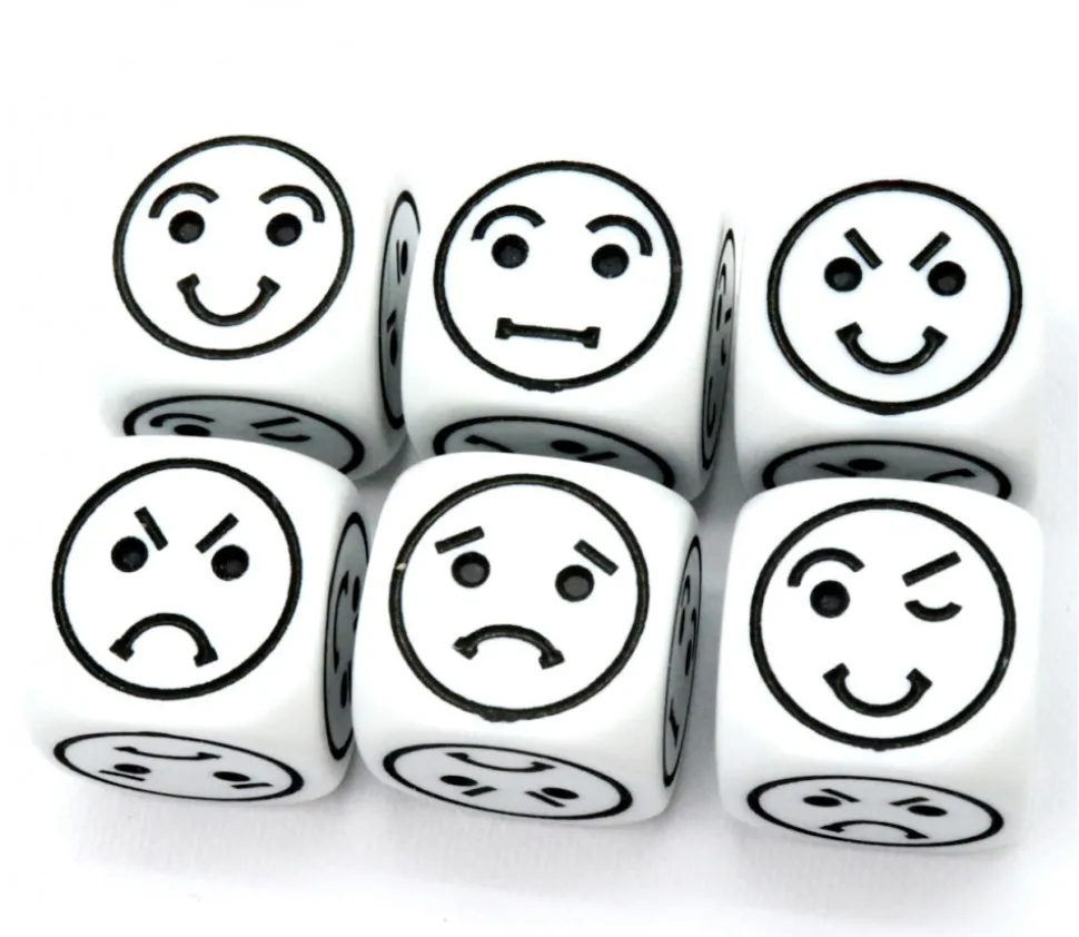 Découvrez le dé à jouer émotions de 22 mm, un outil ludique pour explorer les émotions et les expressions faciales.