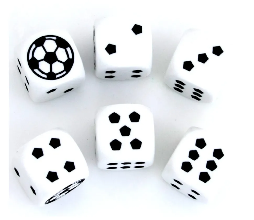Dé à jouer Football avec des ballons et des petits pentagones à la place des points