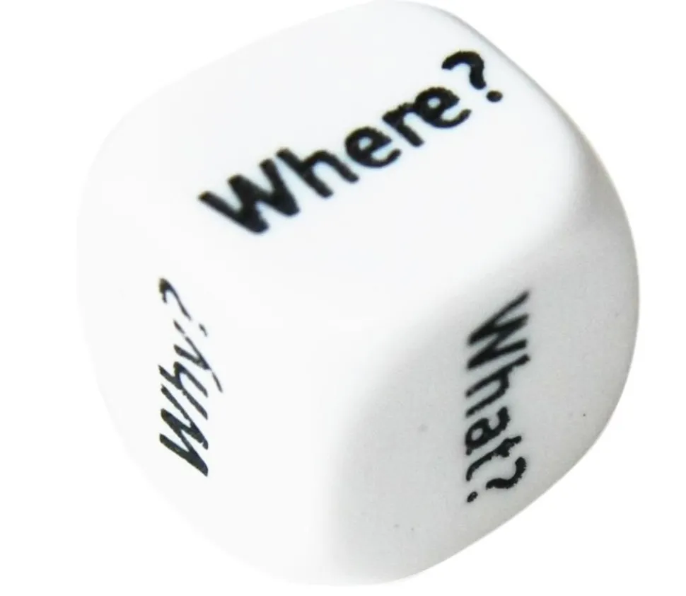 Dé anglais avec les mots what, how, when, where, who, why