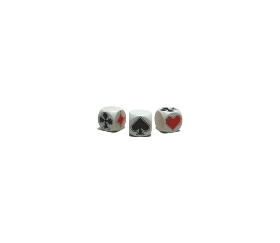 Dé Belote atouts en Bois teinté blanc de 3 cm avec les symboles des cartes : trèfle, coeur, carreau, pique. Dé avec les atouts pour le jeu de Belote. Dé bois blanc 30 mm avec les symboles de cartes. Dé vendu à l’unité.