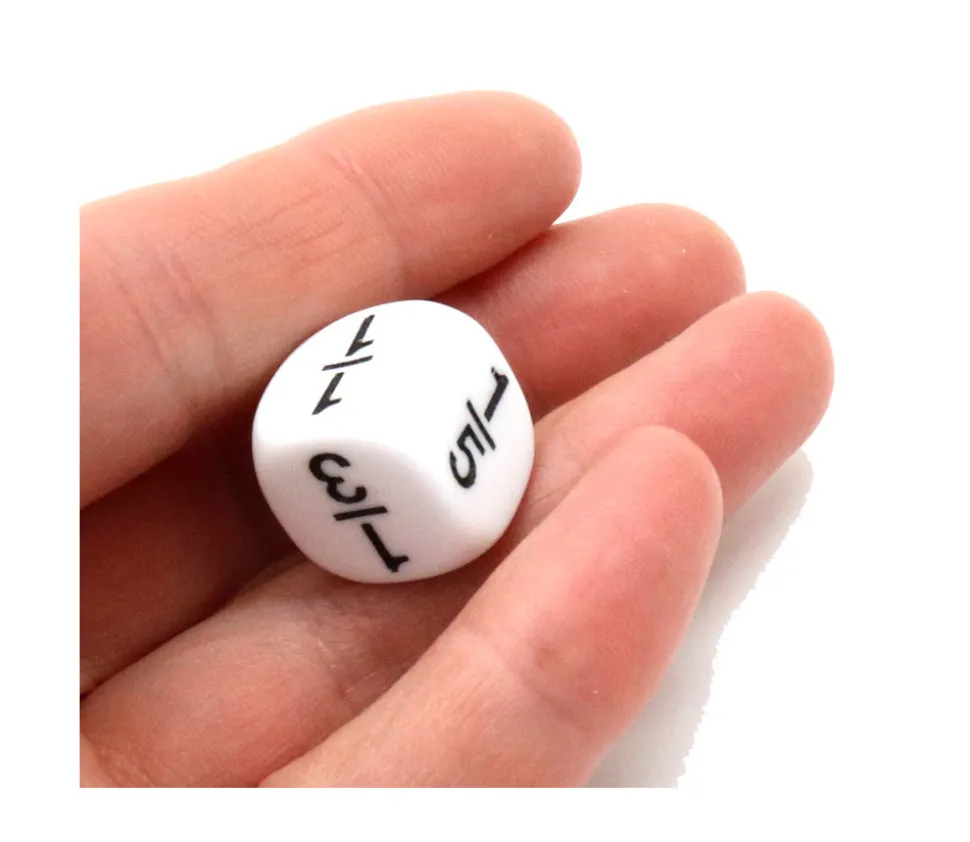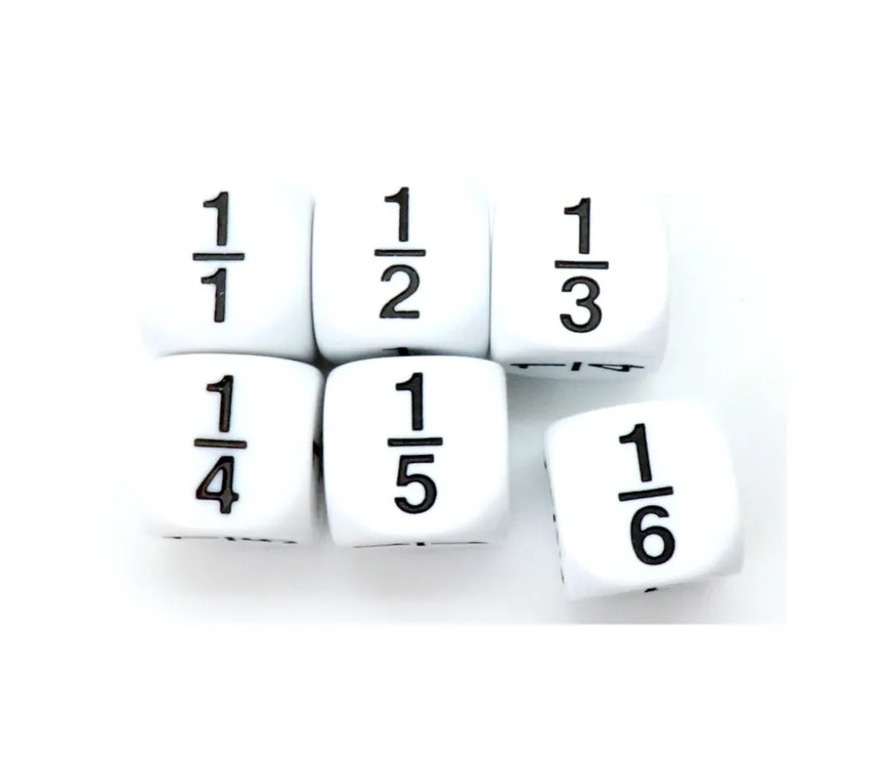 Dé à jouer 16 mm taille standard en plastique blanc avec les faces 1/1 1/2 1/3 1/4 1/5 1/6