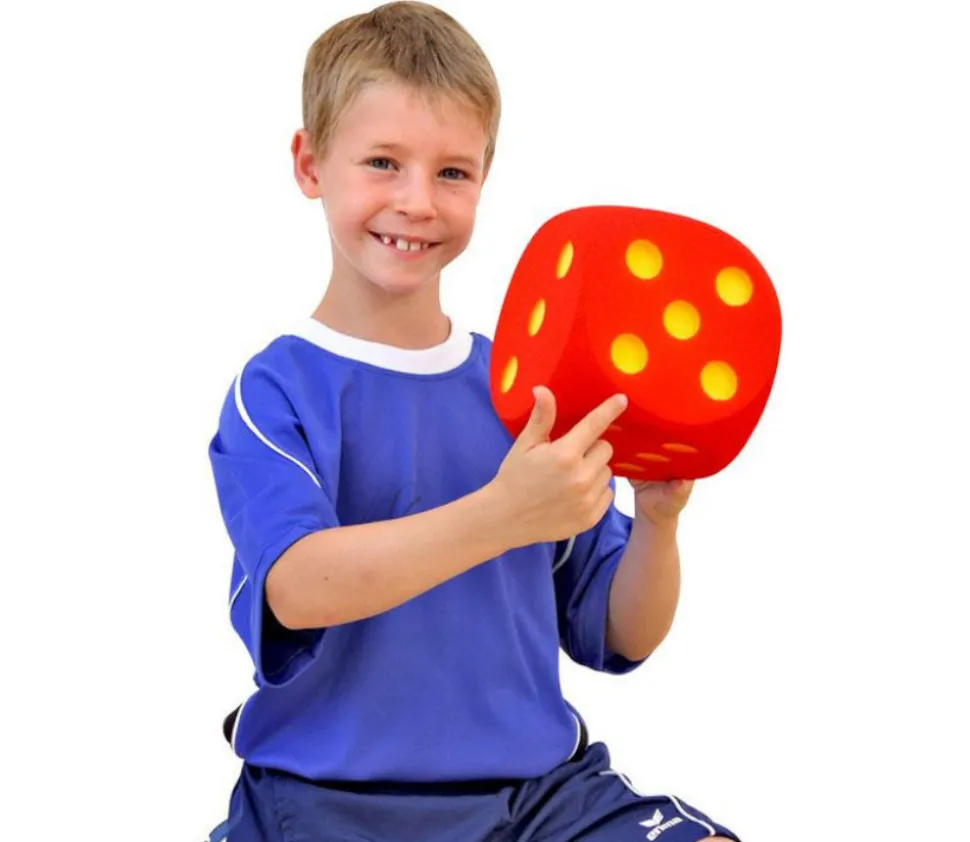 Dé géant en mousse de 16 cm. Tactile grâce aux trous en creux (convient aux personnes malvoyantes).
