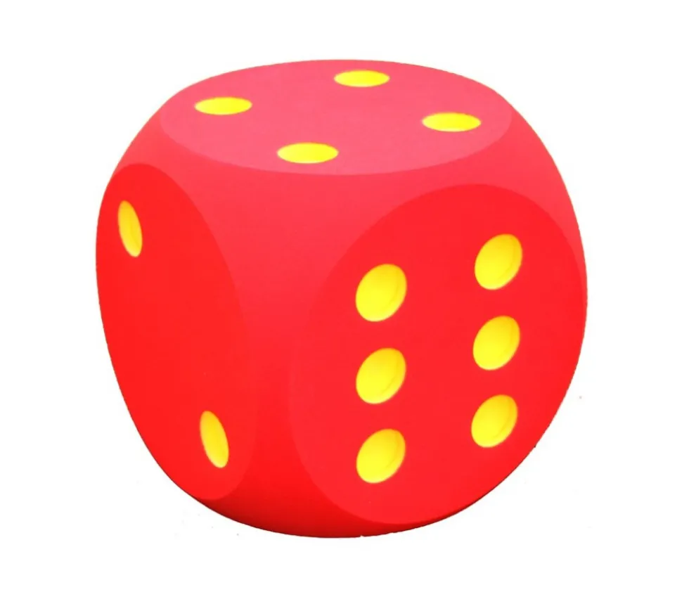Grand dé en mousse alvéolée avec les coins arrondis pour faciliter la rotation du dé à jouer.