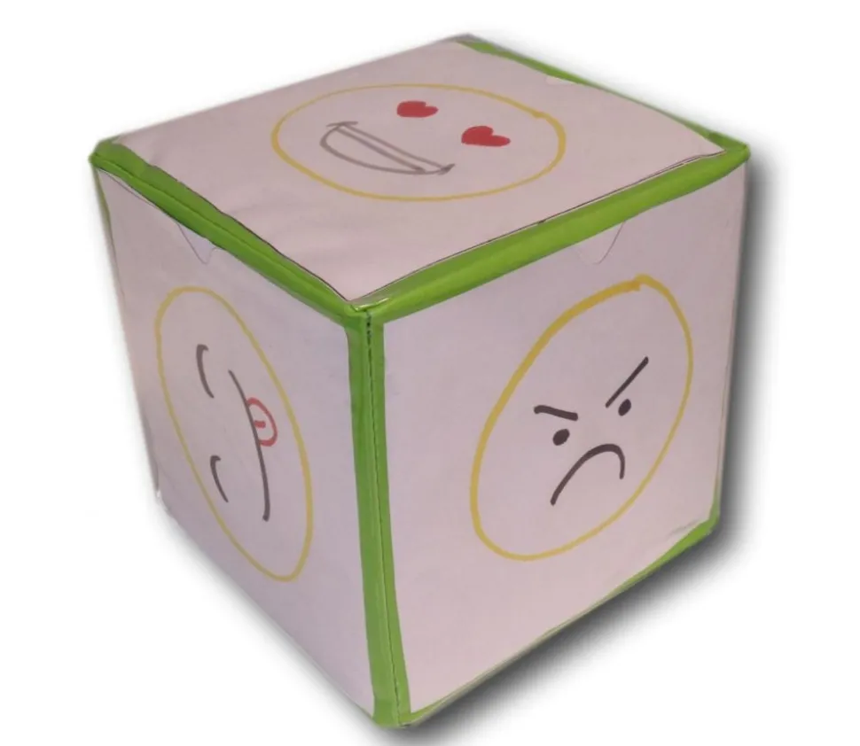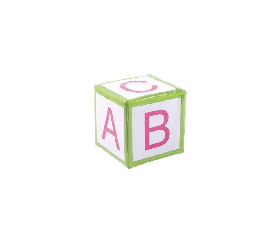 Dé à jouer en mousse recouvert d’une toile colorée verte lavable de 15,5 x 15,5 cm. Chaque face a des glissières transparentes pour glisser le contenu de votre choix.