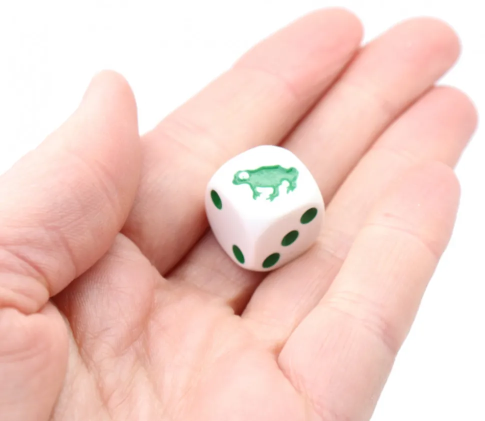 Dé spécial avec face grenouille pour jouer sur le thème des animaux, de la nature et de l’écologie.
