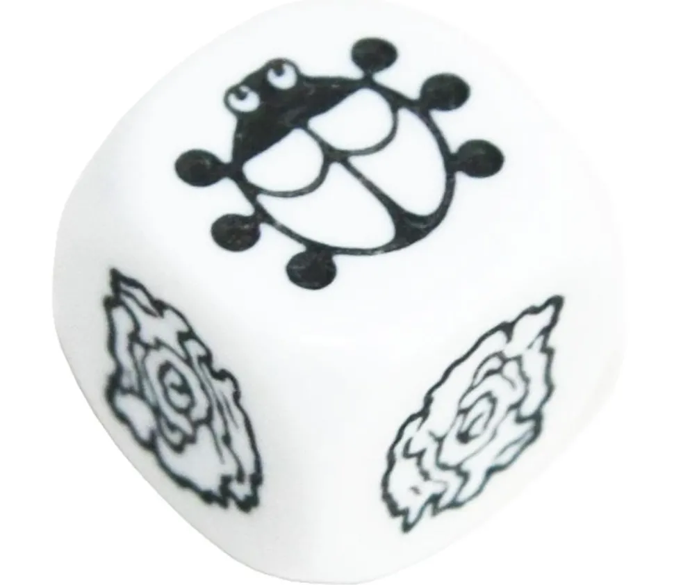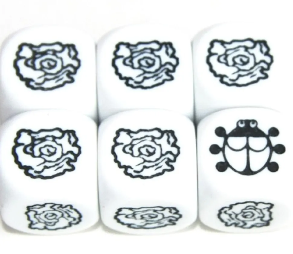 Dé spécial avec 6 faces salades et 1 face insecte style coccinelle.