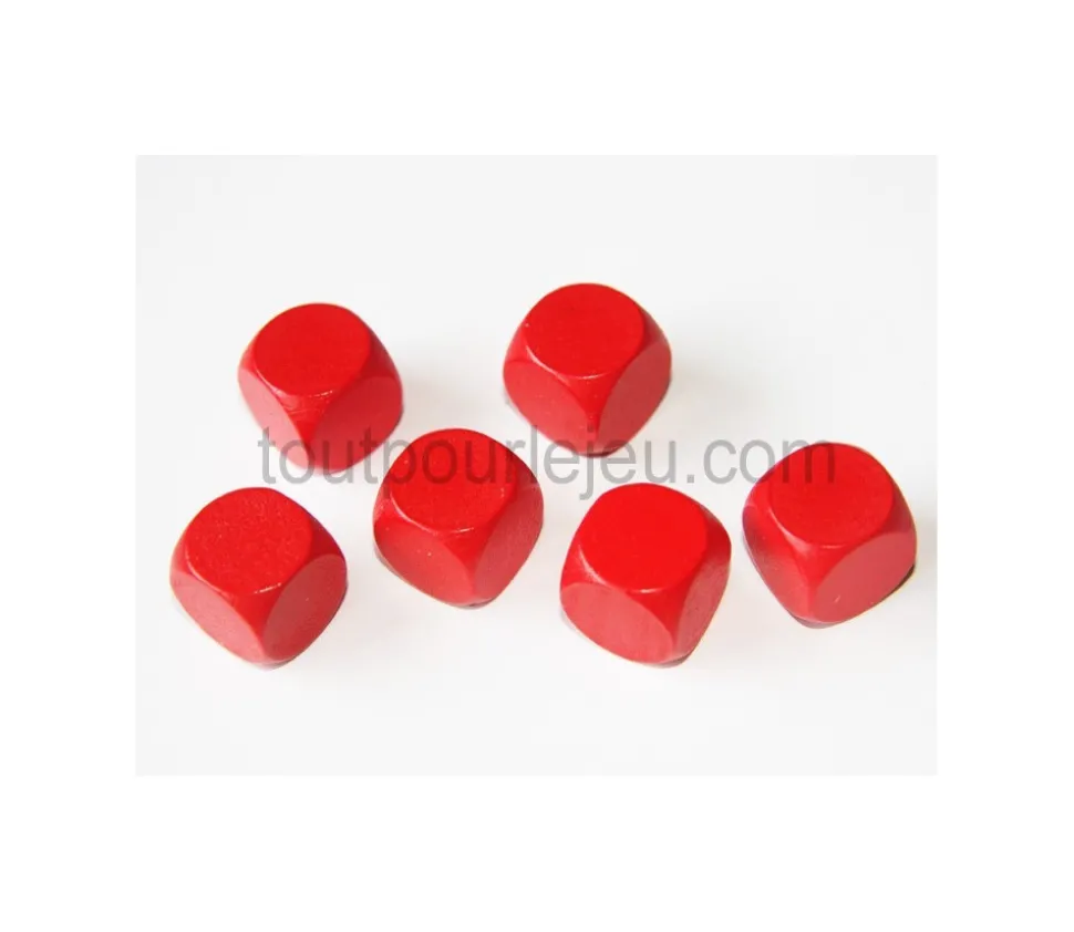 Dé vendu à l’unité : Dé en bois de 1.6 cm de côté neutre sans marquage. Dé en hêtre teinté rouge.