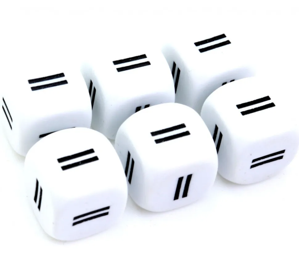 Dé à jouer avec le signe égal = sur les 6 faces.