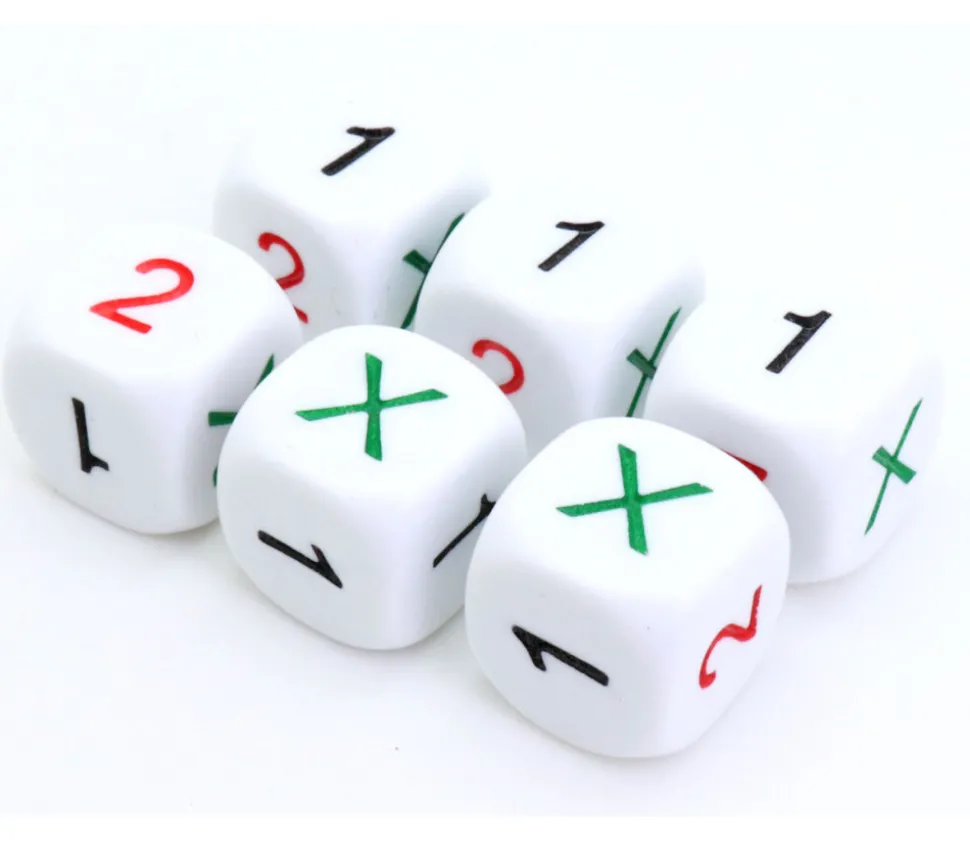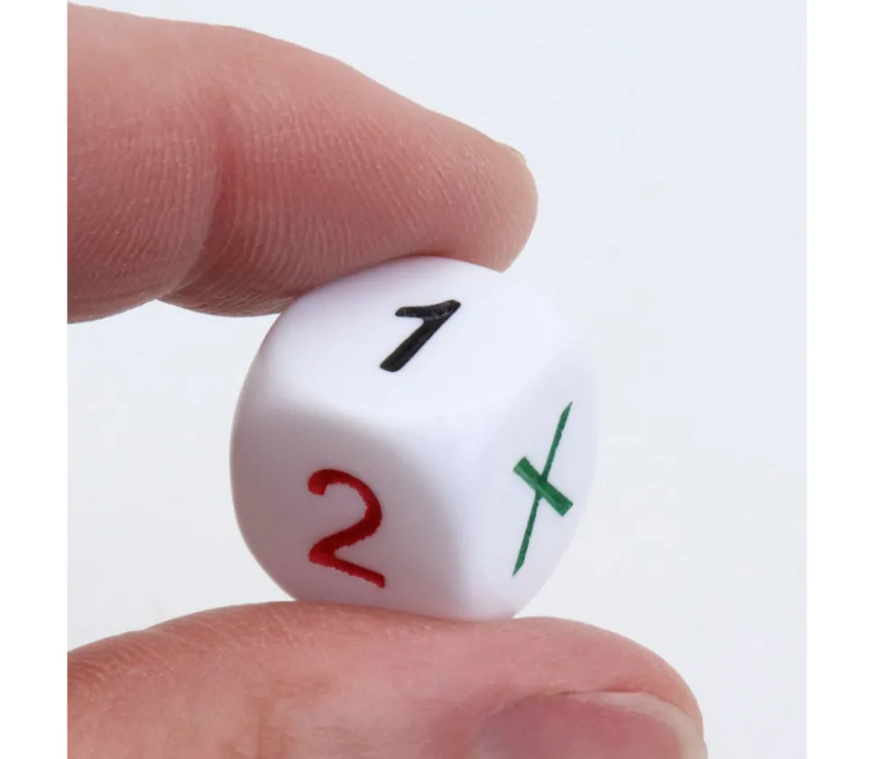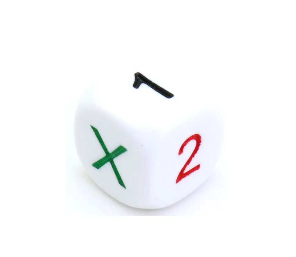 Dé à jouer X 1 2 X 1 1, Dé loterie ou probabiltié. Dé spécial avec les faces 1, 2 et X