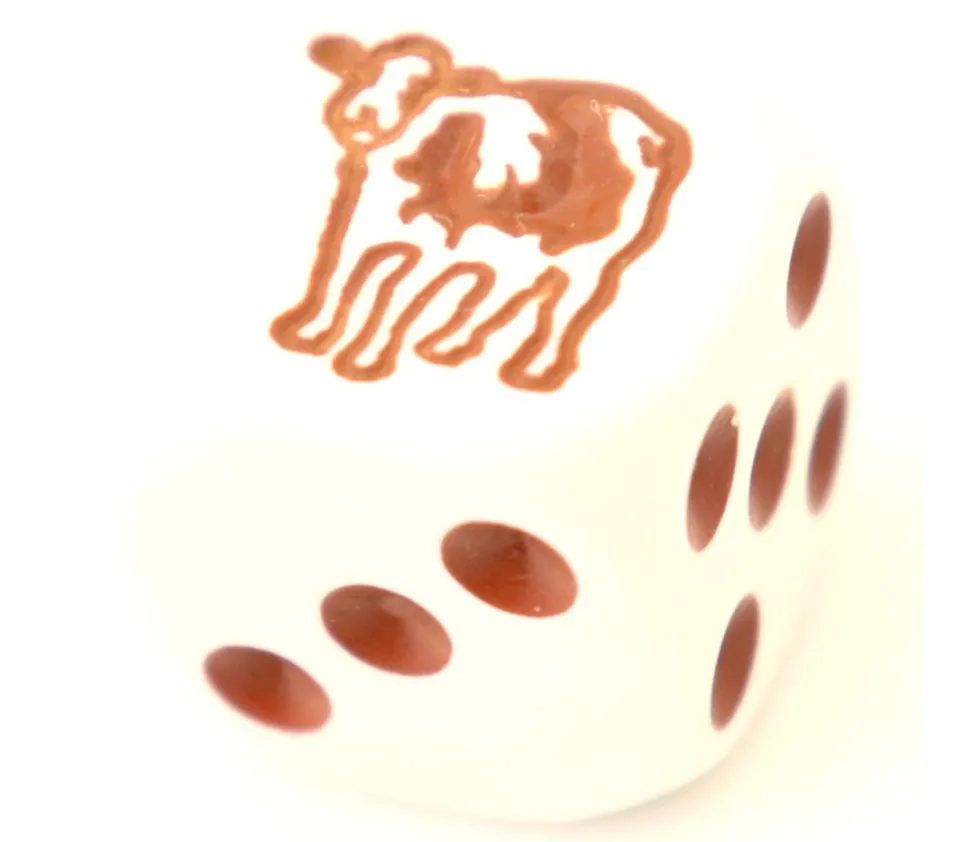 Dé à jouer avec face vache à la place du 1 et faces 2 3 4 5 6.