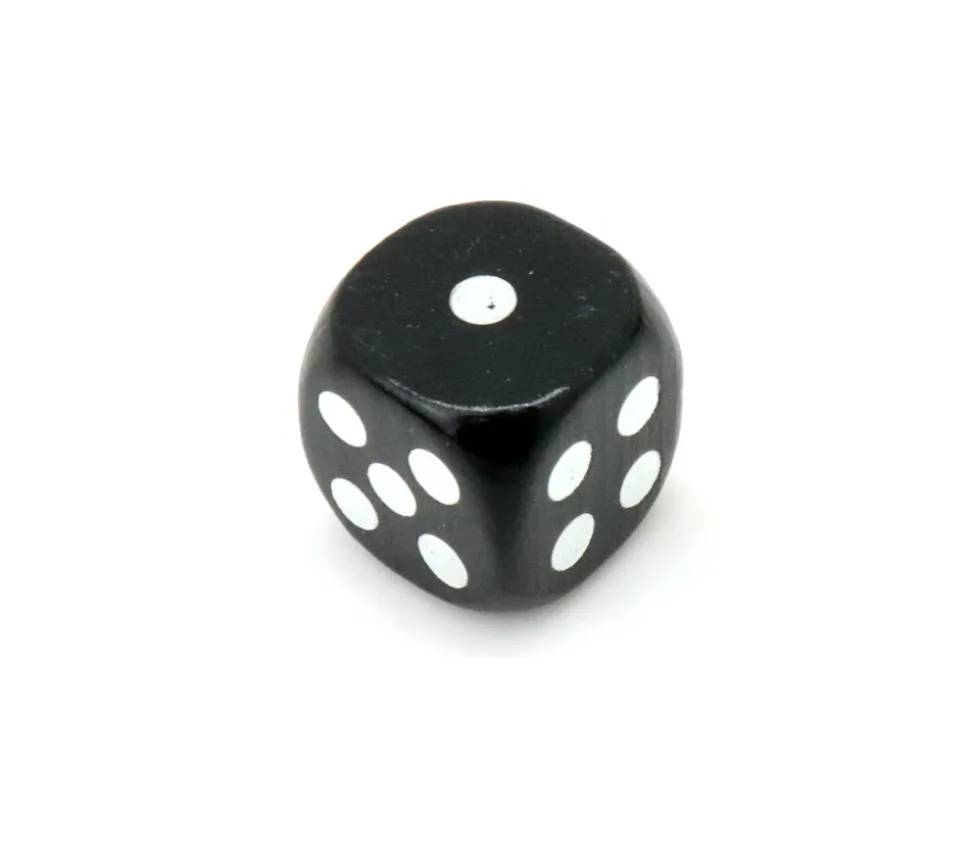 Dé truqué sur la face 1. Dé lesté qui tombera sur le 1. Dé en bois noir de 18 mm points 1 à 6 argentés. Dé à jouer pipé sur le 1 pour surprendre, tricher ou faire des tours de magie. Dé qui tombe la majorité du temps sur la même face pour faire apparaître le 1. Dé pour les joueurs un peu tricheur. Dé en bois avec un lestage sur une face pour faire retomber majoritairement le dé sur la face 1.