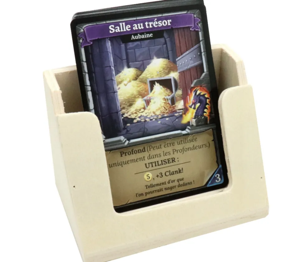 Matériel de jeux d’environ 9 x 6 x 6.5 cm pour y mettre vos cartes de jeux et les piocher facilement au fur et à mesure aux joueurs au cours de la partie. A utiliser tel quel (bois brut) ou à personnaliser pour étonner vos adversaires.