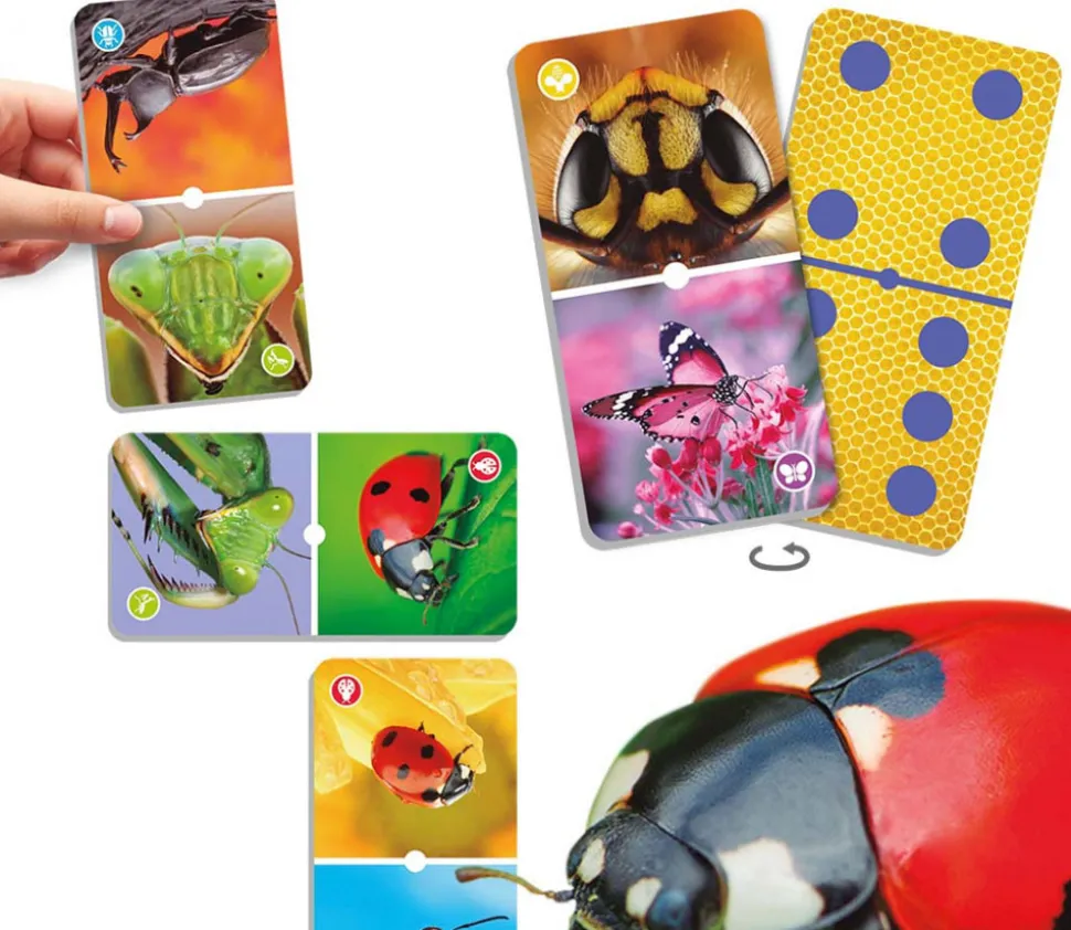 Natudomino des insectes : domino avec de grandes cartes de jeux et de très belles photos des animaux.