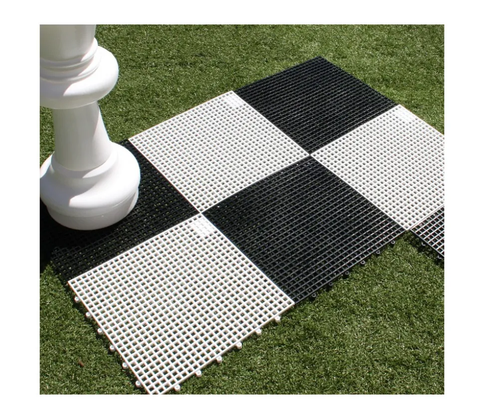Echiquier plastique extérieur format ultra géant. Cases clipsables pour créer votre échiquier facilement en extérieur. Son grillage spécial vous permet de l’utiliser sur tout type de sol, pelouse, dalles ou macadam. Facile à ranger,vous déboitez les dalles plastiques.