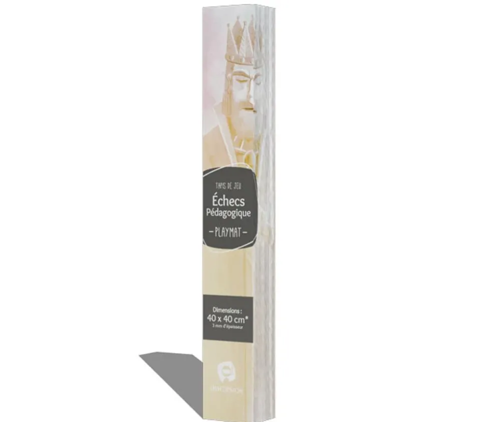 Echiquier tapis de jeu enroulable pédagogique 40 x 40 cm. Un échiquier aux cases blanches et marrons. Le contour de l’échiquier possède le marquage des lettres et chiffres et des rappels de déplacements des pièces. Ces repères facilitent l’apprentissage des échecs.
