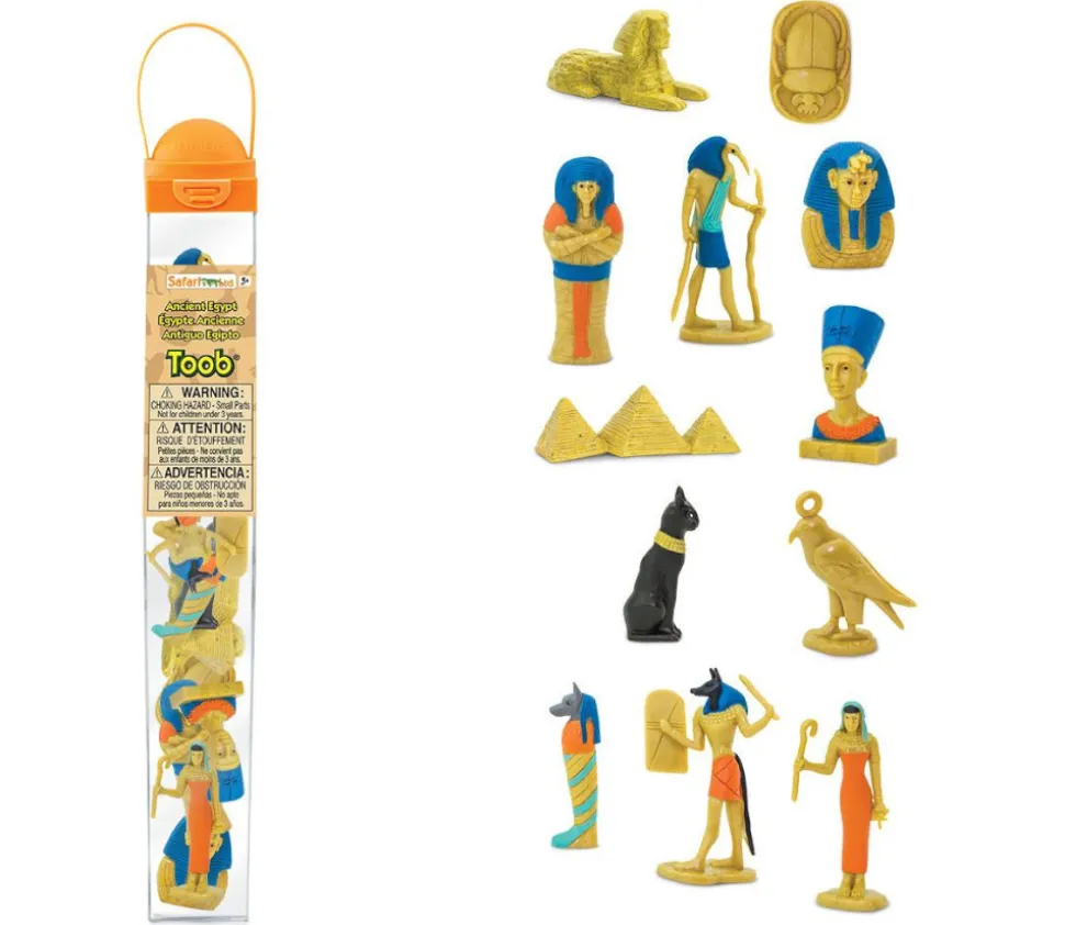 Tube de figurines égypte des pharaons en plastique pour jeux et découverte des enfants comprenant :