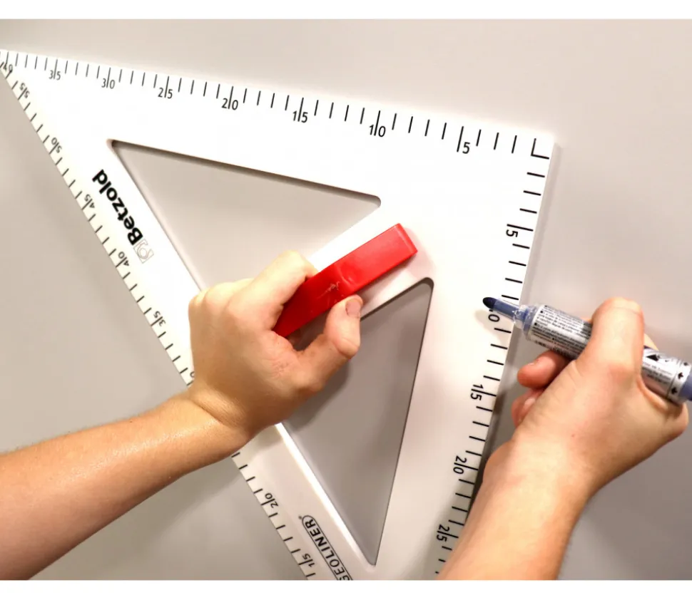 Outil d’aide pour apprendre la géométrie et tracer facilement des formes géométriques au tableau pendant vos cours de mathématiques. Equerre géante pour enseignants et professeurs.