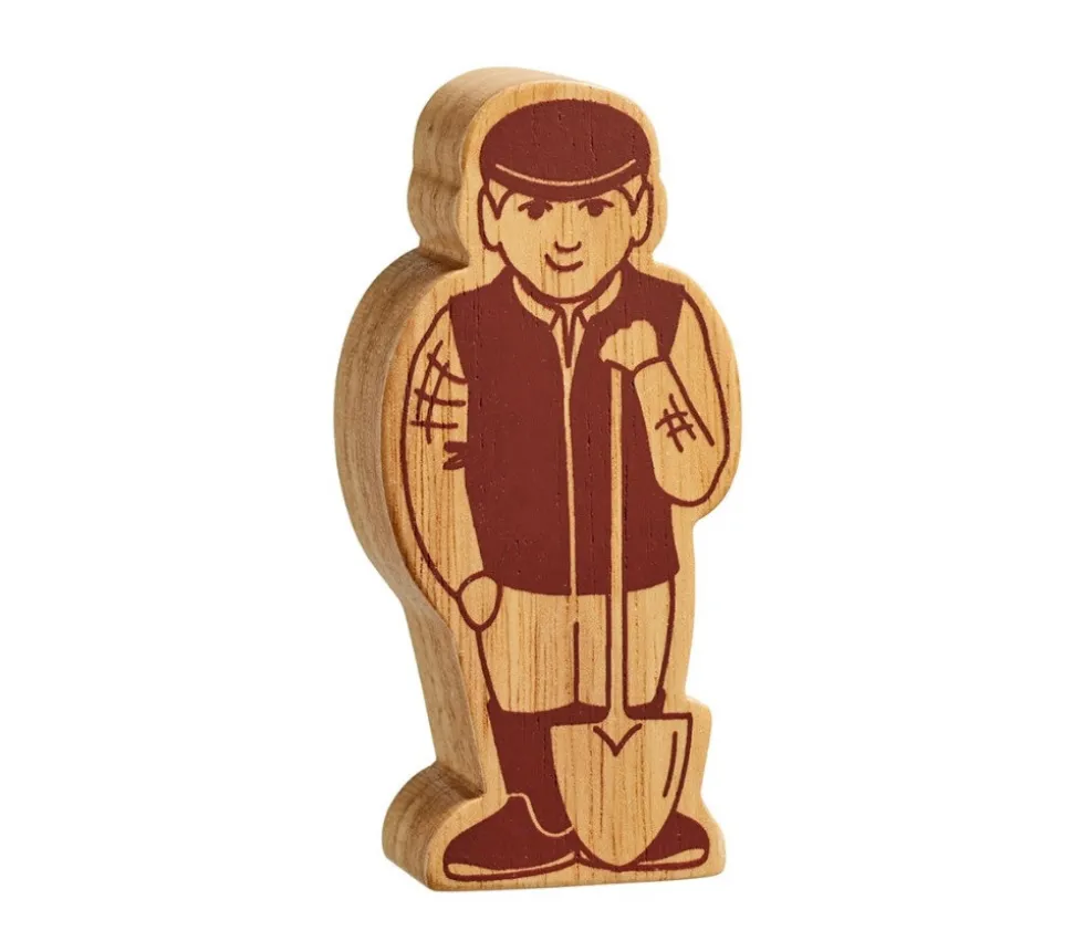 Pion Fermier en bois massif naturel coloré marron. Pion de jeu en bois très réaliste peint recto et verso. Dimensions 100 x 46 x 25 mm. Le pion représente un homme avec une pelle à la main. Fermier, jardinier, personnage travailleur,… Super pour de nombreux jeux de société. Fabrication et commerce équitable pour ce pion de jeu sympathique. A combiner avec animaux et autres personnages pour créer une ferme. Jouet en bois fabriqué au Sri Lanka. Nous avons sélectionné ces produits pour leur qualité et le respect du commerce équitable. Quand vous achetez ce produit, vous supportez directement une fondation pour l’éducation en milieu rural au Sri Lanka (achat de livre, de lait et de nombreux outils d’aide à l’apprentissage pour que les enfants puissent apprendre dans de bonnes conditions).