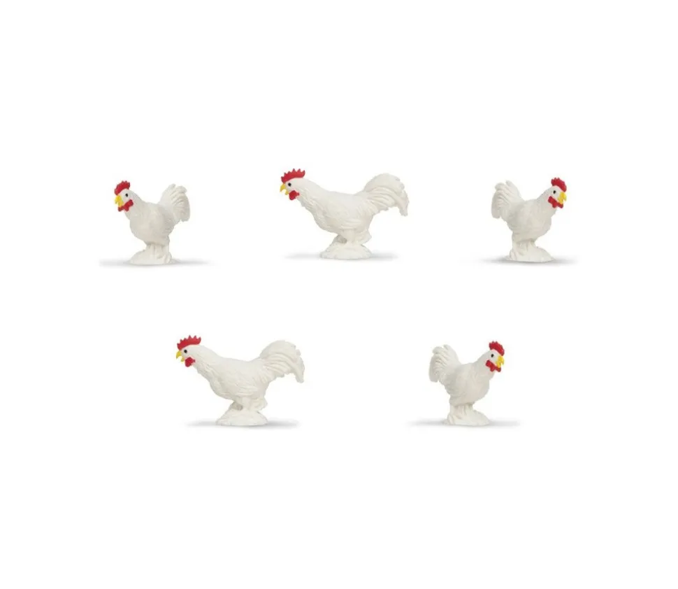 Mini figurine coq. Miniature coq blanc. De jolis animaux de la ferme en taille mini pour décoration, jouet, bricolage, pion de jeux. Animal de la ferme ressemblant et bien fini. Dimensions du coq: hauteur 2 cm, largeur 1 cm, longueur 1.9 cm