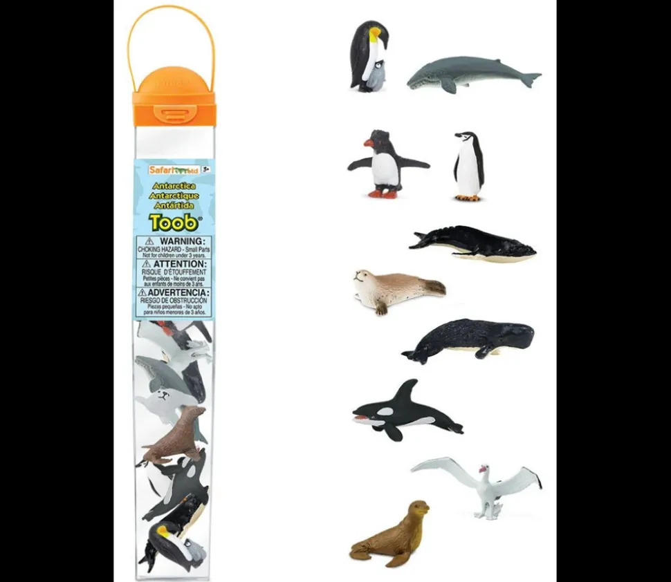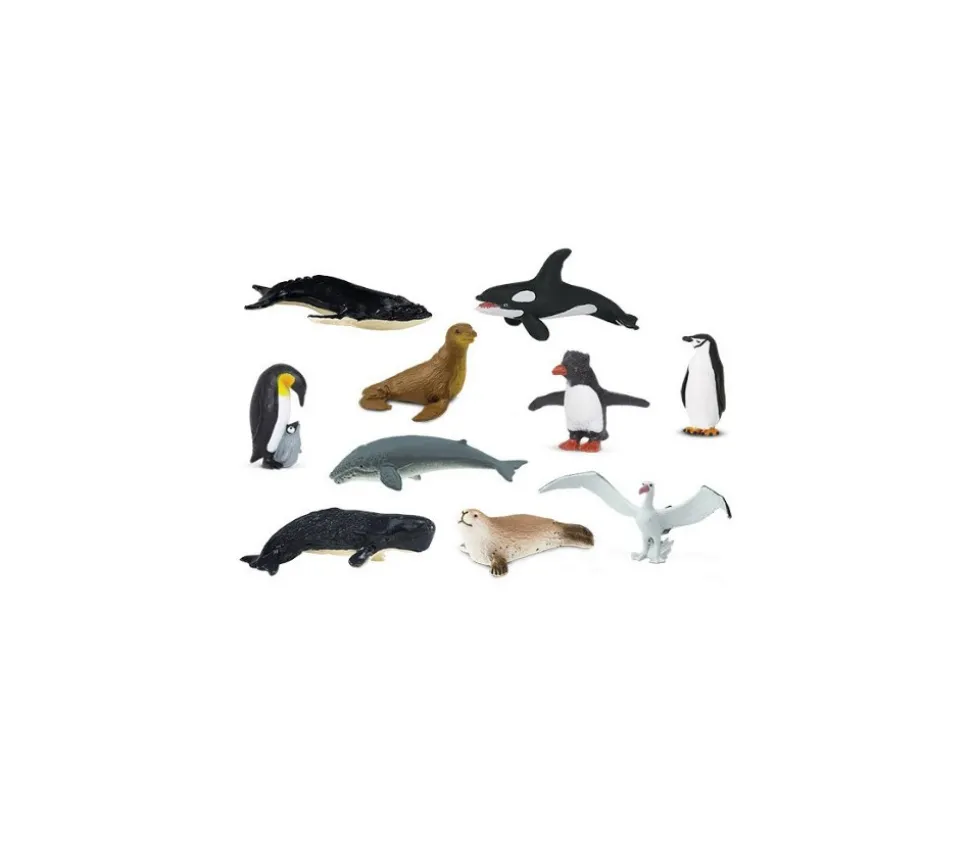10 figurines d’environ 6 cm représentant les animaux de l’Antarctique : pingouin empereur, baleine bleue, manchot, phoque, otarie, orque, albatros, cachalot, baleine à bosse… Figurine de jeu en plastique oiseau et animaux marins les plus représentatifs du Pôle Sud. Superbe représentation de ces animaux polaires pour apprendre à mieux les identifier. Tube de rangement livré avec 10 figurines.