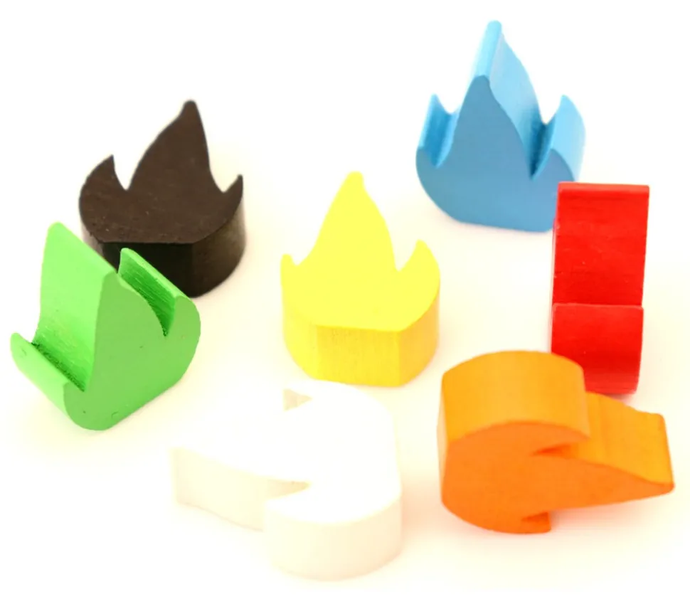 Pion petite flamme en bois teinté en couleur à utiliser comme ressource pour vos jeux de société. Pièces idéales pour créer vos jeux, décorations ou autres.