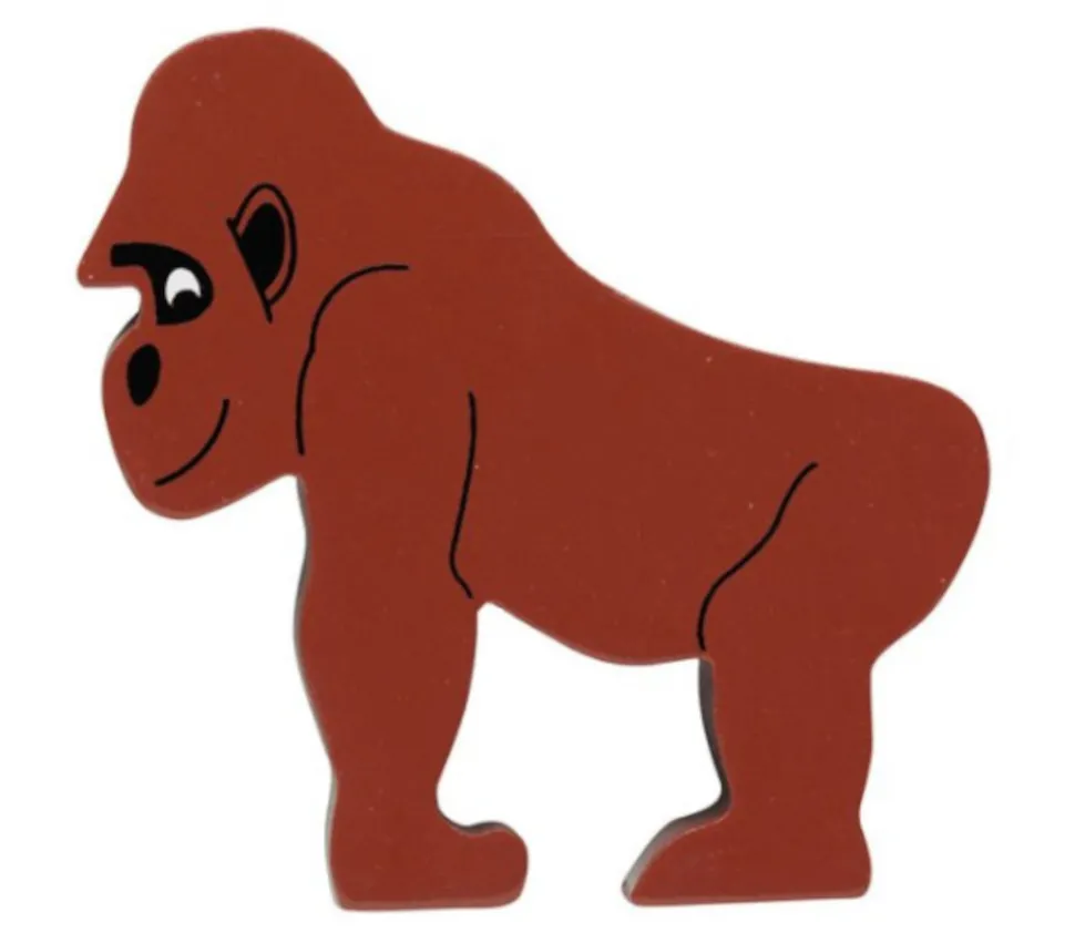 Pion gorille en bois. Pion de jeu en bois très réaliste peint recto et verso. Dimensions 77 x 77 x 15 mm. Petit gorille marron en bois jouet. Animal sauvage de 77 x 77 x 15 mm peint. Pion de jeux de société ou jouet pour créer un mini monde sauvage ou à combiner avec d »autres animaux pour création de mini zoo en bois avec ses jouets issus du commerce équitable.