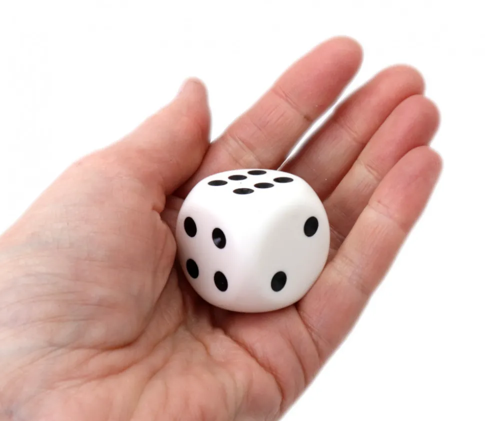 Gros dé à jouer blanc de 32 mm standard.